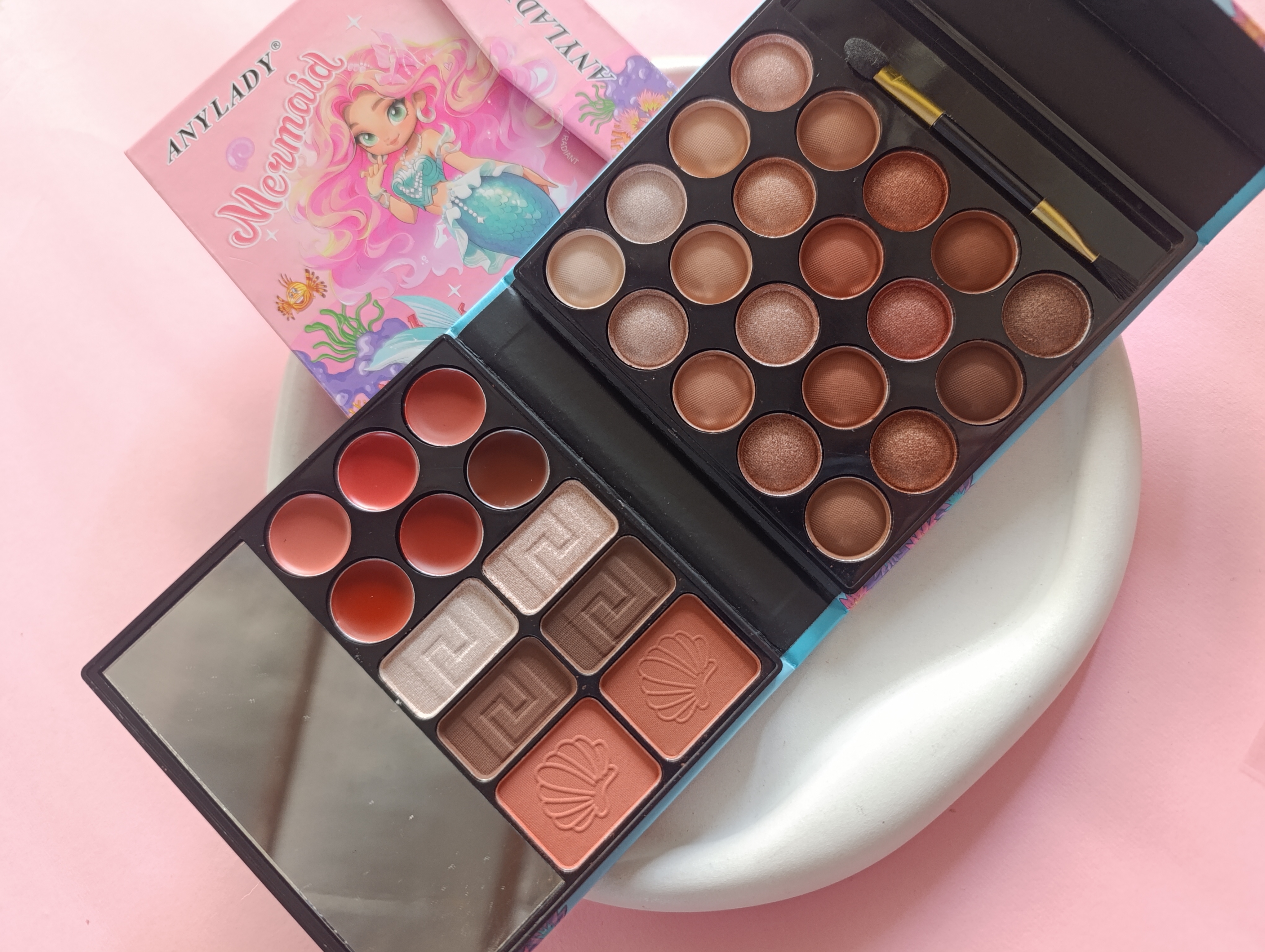 پلت سایه پری دریایی: دارای آیینه. رژ. هایلایتر. کانتور. رژ گونه. ۲۰ عدد سایه مات و شاین. براش مخصوص